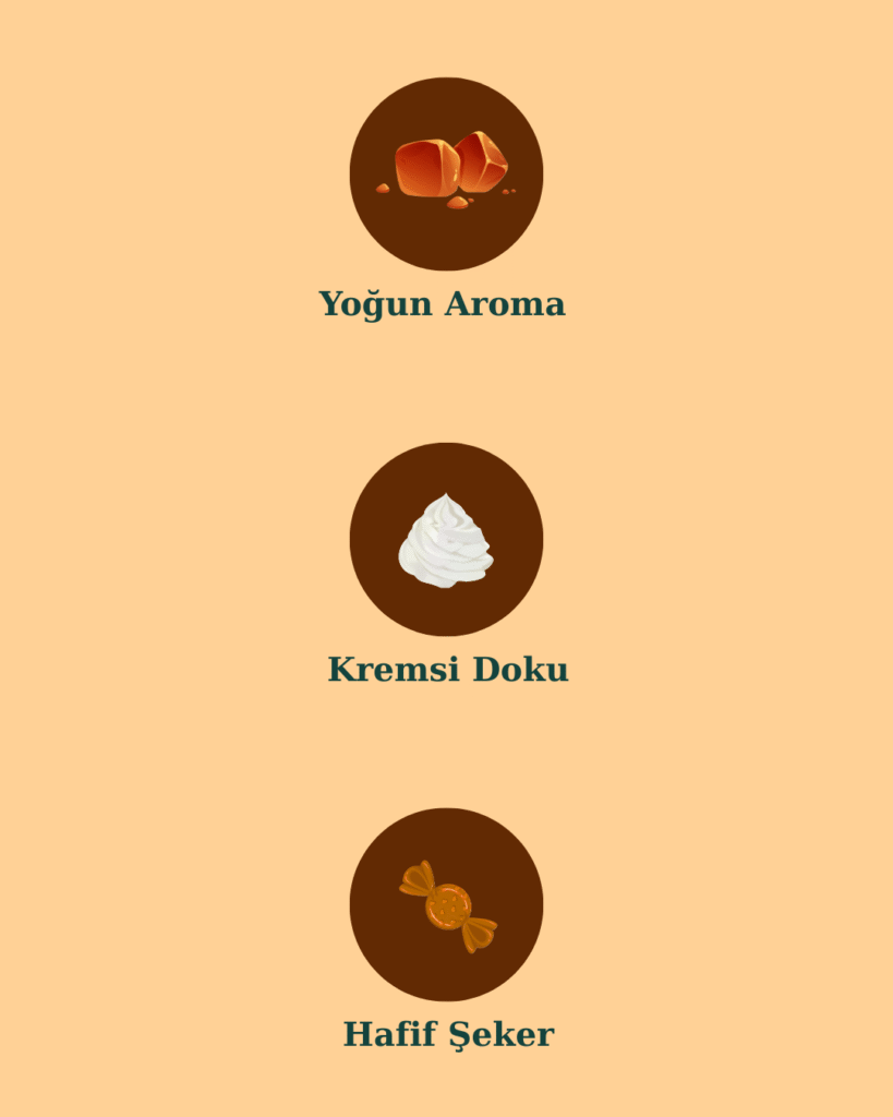 Yoğun karamel, hafif tuz ve pürüzsüz bir krema dengesi.